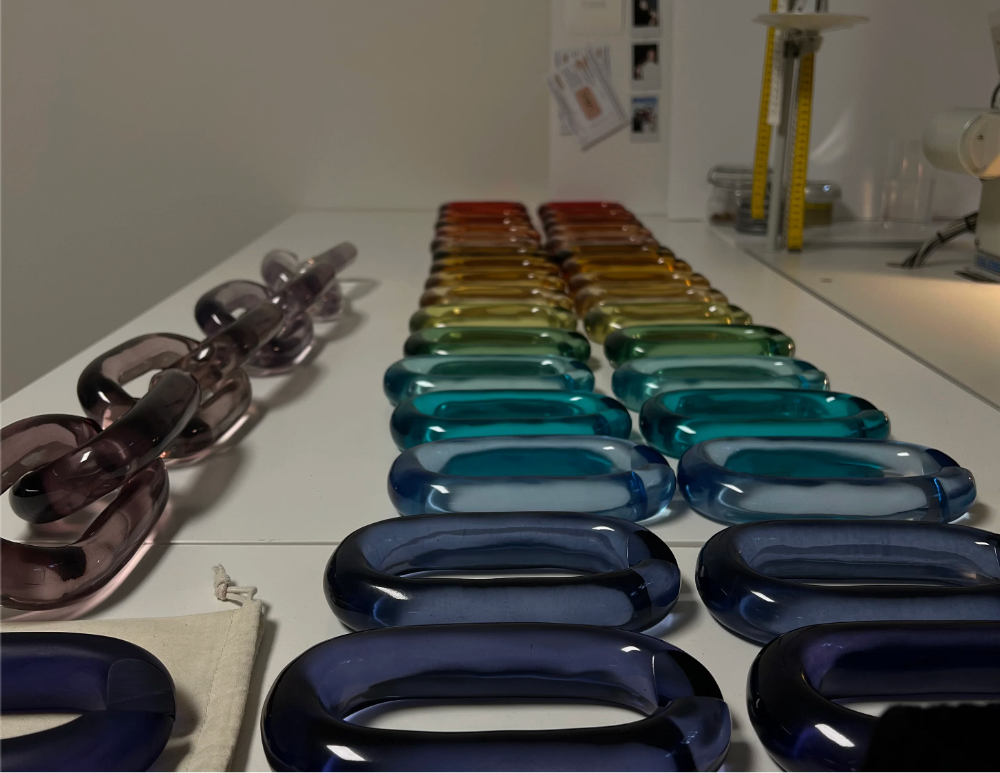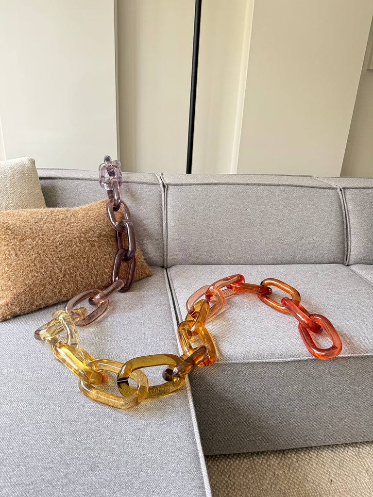 Discover handmade oversized acrylic chain links for walls and ceilings. Modular, customizable colors and lengths. Worldwide shipping from Canada.